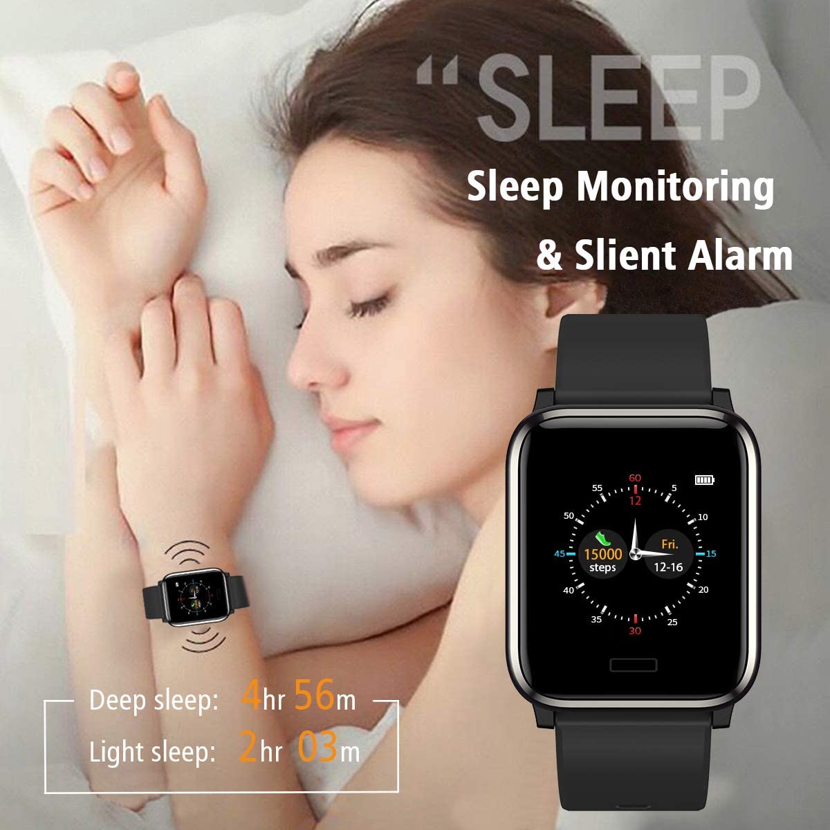 • гЂђHeart Rate & Sleep MonitorгЂ‘пјљMeasuring your heart rate on every 1 / 2/ 6 /12 hour automatically once you set up it in the app. You can also set up real-time heart rate tracking or manually tracking. Or you switch watch to heart rate interface, it will also automatically monitor your heart rate within 30 seconds (Measurement results are for reference only, not for medical use).