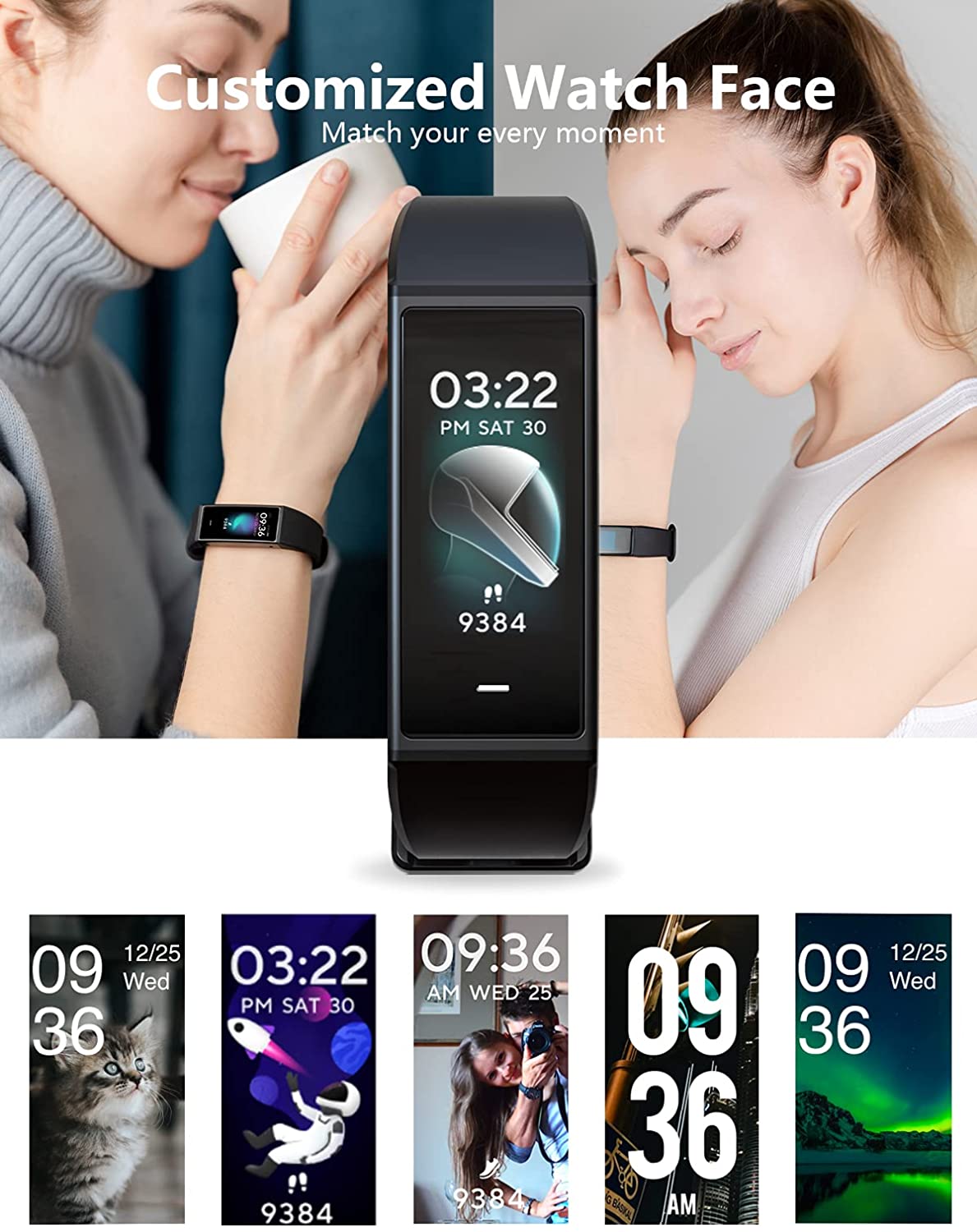 WYZE Band Fitness Tracker with Alexa Built-in, Activity Tracker Watch with Heart Rate Monitor, Smart Fitness Band with Step Counter, Calorie Counter, Pedometer Water Resistant, Black