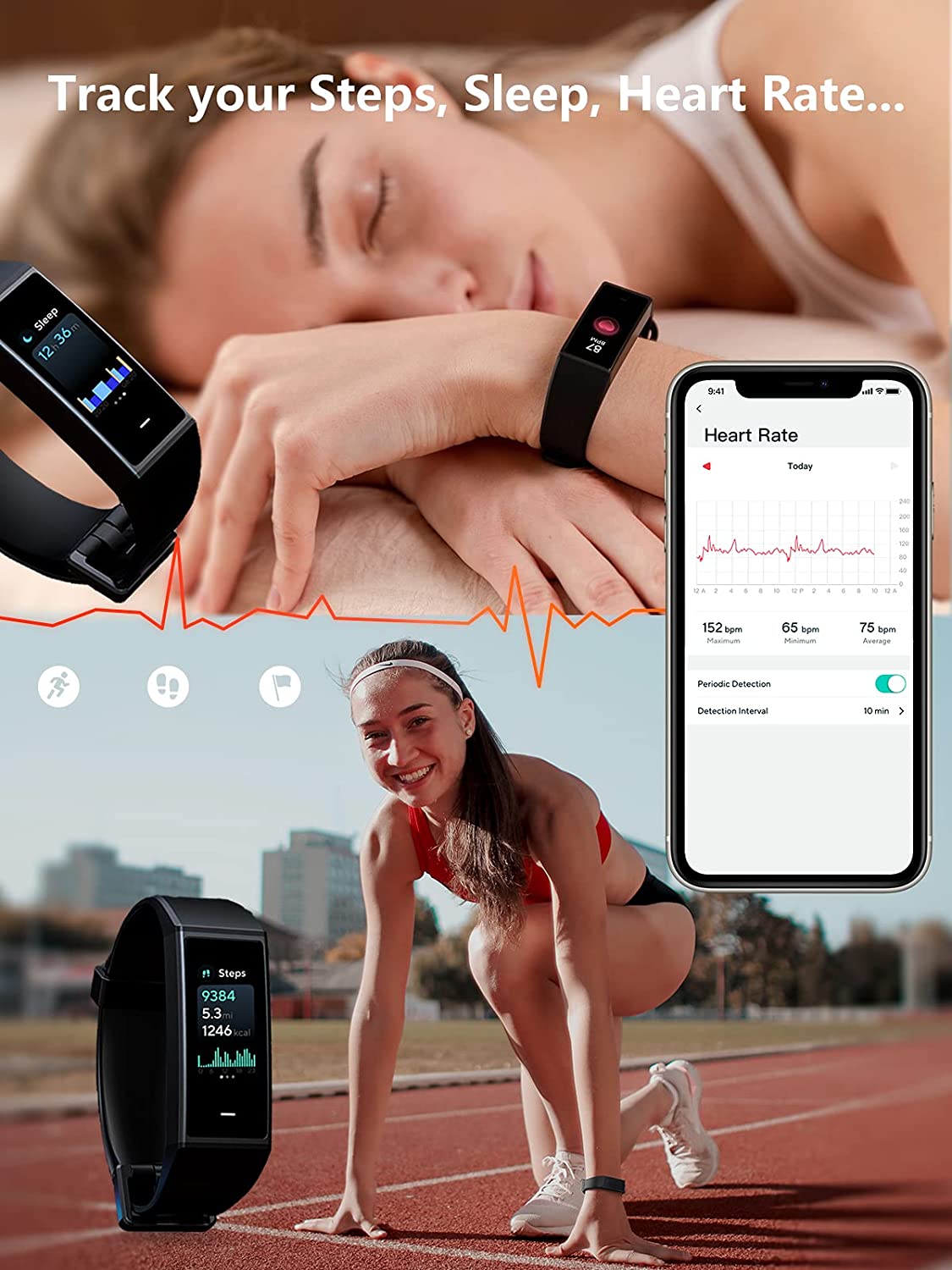 • WYZE Band Fitness Tracker with Alexa Built-in, Activity Tracker Watch with Heart Rate Monitor, Smart Fitness Band with Step Counter, Calorie Counter, Pedometer Water Resistant, Black